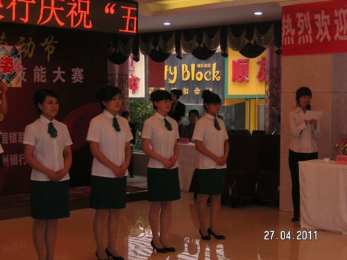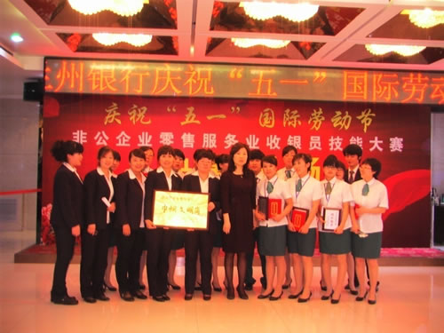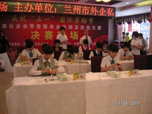 由蘭州市總工會主辦的“非公企業(yè)零售服務(wù)業(yè)收銀員技能比賽” 于2011年4月27日下午,在人民飯店落下帷幕。參加比賽的選手都是來自各公司和企業(yè)的業(yè)務(wù)尖兵,現(xiàn)場壓力重生,但是能和高手同臺競技是挑戰(zhàn),也是幸運(yùn),大家都為榮譽(yù)而奮斗。比賽經(jīng)過單指單張、多指多張、機(jī)器點(diǎn)鈔、銀行卡刷卡、即問即答、工裝展示環(huán)節(jié)近四個小時的比拼。最終國芳百貨收銀部取得了驕人的成績,團(tuán)隊(duì)授予“巾幗文明崗”,參賽的12名選手在單項(xiàng)成績中,兩人榮獲得一等獎、四人榮獲二等獎、四人榮獲三等獎、兩人榮獲優(yōu)秀獎。